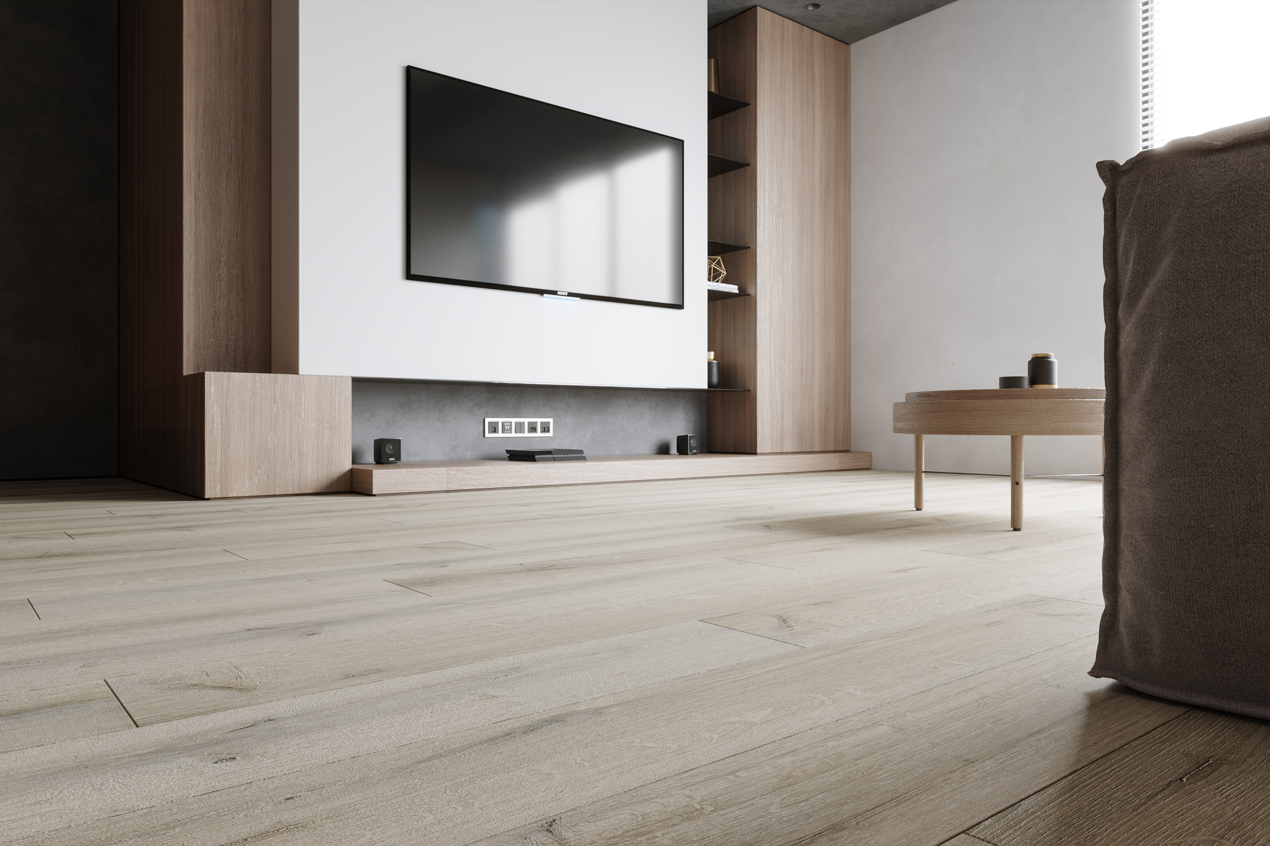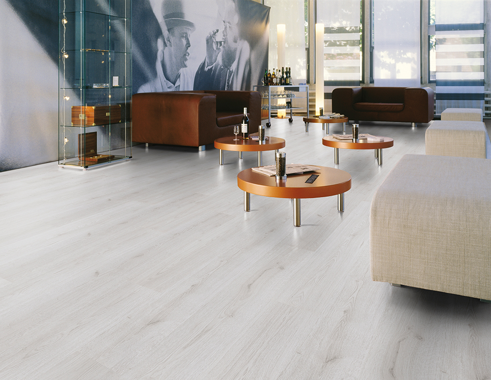 Ngày nay với sàn gỗ công nghiệp, các sắc thái khác nhau của màu trắng được biến tấu và sử dụng rộng rãi. Trong đó có thể kể đến như màu trắng xám nhạt, vàng trắng, màu be sáng là những tông màu thường gặp phổ biến nhất. Đây cũng được coi là những sắc màu “trẻ”, dễ sử dụng, dễ kết hợp cùng nhiều màu nội thất theo các phong cách khác nhau.