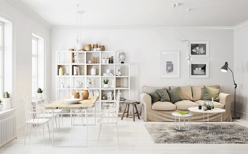 Phong cách Bắc Âu ưu tiên sử dụng tối đa không gian và công năng của đồ vật thay vì để chúng riêng lẻ. Không gian không bị "chia tách" bởi những chi tiết trang trí rườm rà, thay vào đó các chi tiết này được sử dụng một cách tiết chế để tạo điểm nhấn hợp lý, kết hợp với việc dùng nhiều đồ nội thất thông minh để tối ưu hoá tiện ích cho người sử dụng. Đây là lý do mà những ngôi nhà có diện tích nhỏ rất thích hợp với việc áp dụng kiểu phong cách thiết kế Bắc Âu.