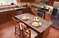 Sử dụng sàn gỗ công nghiệp trong khu vực nấu nướng sẽ giúp không gian trở nên sạch sẽ và ngăn nắp hơn, từ đó bữa tối cũng trở nên thoải mái và thú vị. Đối với phòng bếp, nên chọn các loại sàn gỗ công nghiệp có khả năng chống xước tốt và có gam màu tươi sáng, nhằm mang lại cảm giác ấm áp và tràn đầy sinh khí cho bếp.