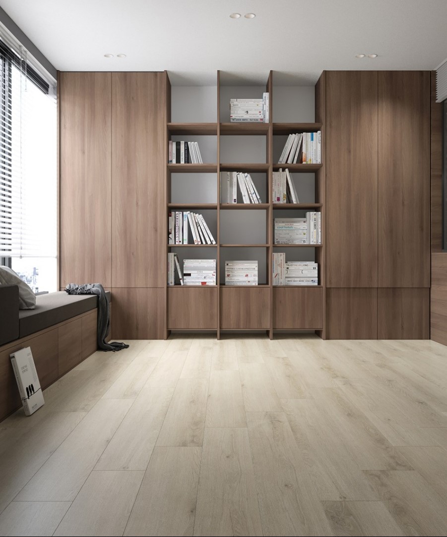 Sàn gỗ công nghiệp tông sáng: màu be hoặc trắng